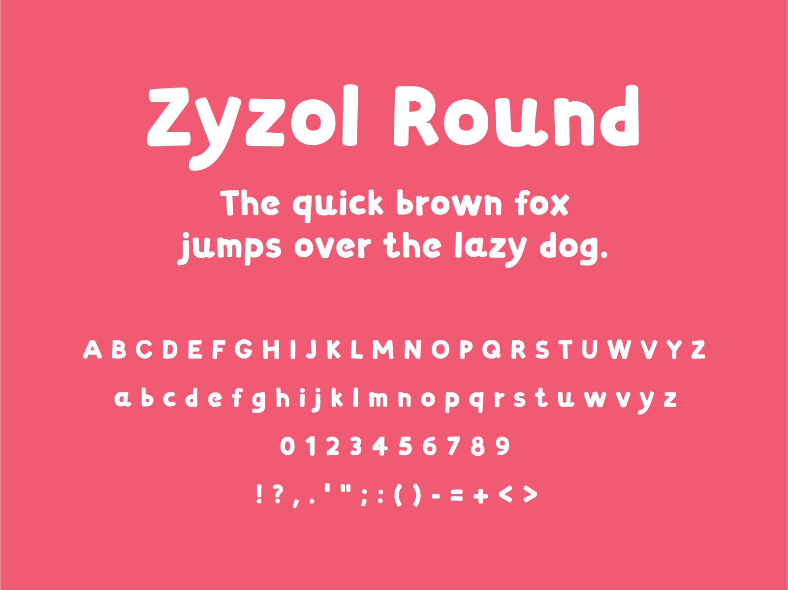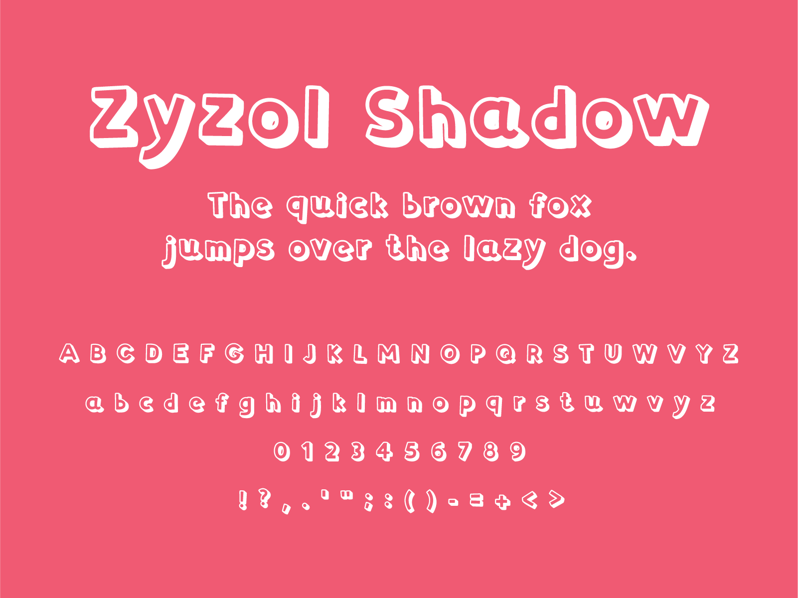 The font constains 5 styles (Regular, Round, Bold, Shadow, Outline)